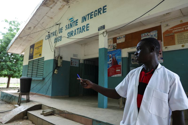 Aguitia Pascal, a nurse, gestures as he stands in front of an Integrated Health Center, in Bogo, Cameroon September 2, 2025. REUTERS/Desire Danga Essigue
