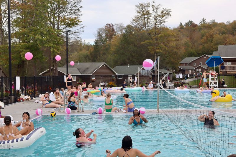 Below me: a wind-rippled lake. Behind me: a line of cheering women, all of whom I’ve only just met. On any other Saturday, I’d still be asleep. But I’m at Camp Social — a luxury, all-women adult sleepaway camp in the Poconos — where the tagline is “99% arrive solo, 100% leave as friends.” And in the spirit of field reporting, I’ve promised myself I’ll say yes to everything. So I take a breath, plug my nose, and launch down the slide.