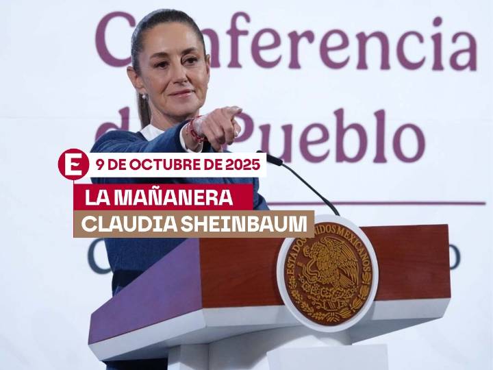 La presidenta Claudia Sheinbaum encabeza su conferencia mañanera de este jueves 9 de octubre desde Palacio Nacional.