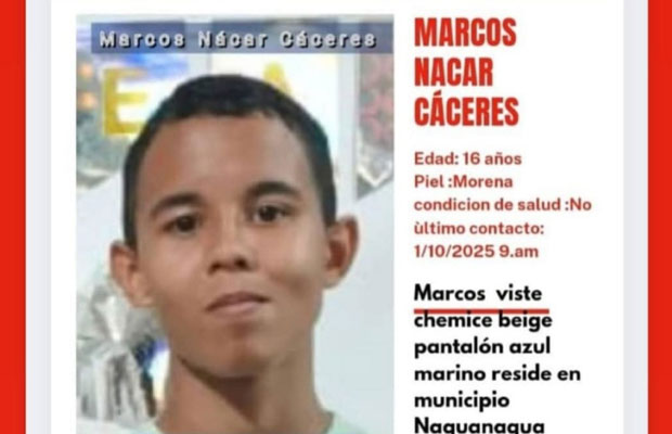 Un adolescente de apenas 16 años, llamado Marcos Alejandro Nácar Cáceres, se encuentra desaparecido desde mediados de la semana pasada en la ciudad de Naguanagua, en el estado Carabobo.