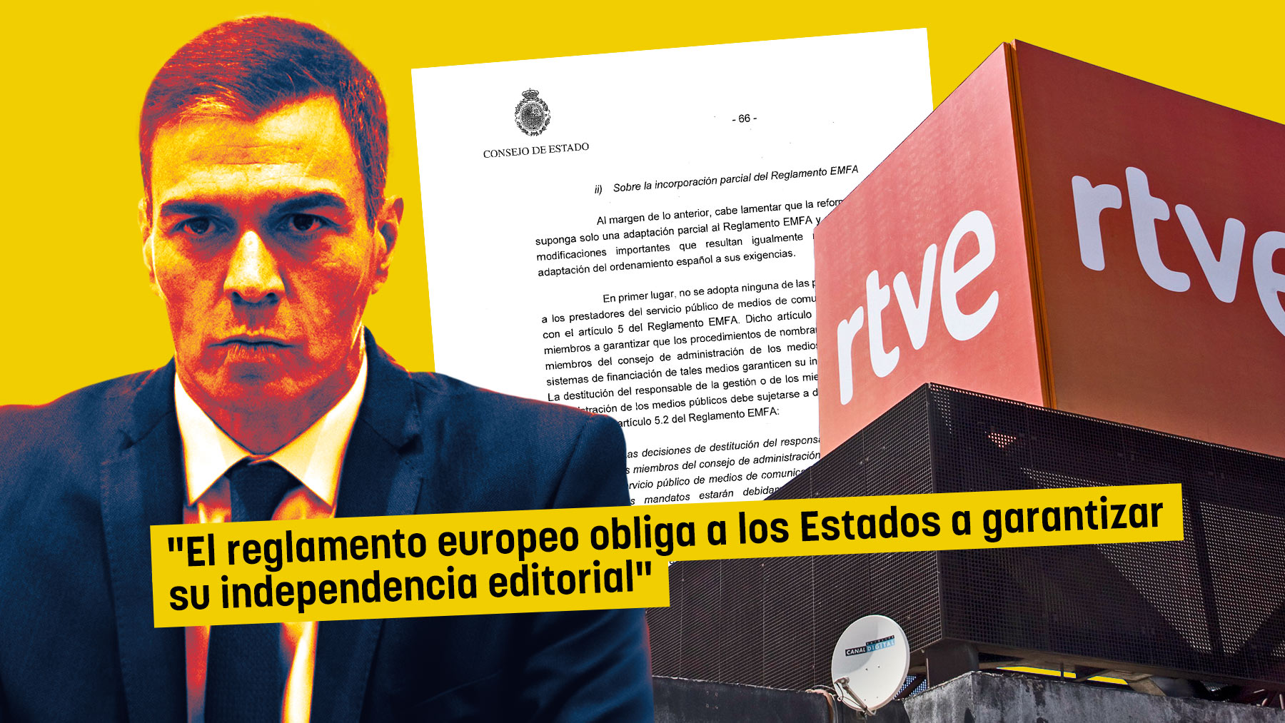 El Consejo de Estado , máximo órgano consultivo del Gobierno, destaca en su dictamen sobre la llamada Ley para la mejora de la gobernanza democrática en servicios digitales y medios de comunicación -al que ha tenido acceso OKDIARIO- que el Ejecutivo no ha adoptado medidas para, como obliga la Unión Europea, salvaguardar la independencia de los medios públicos como RTVE. En su lugar, en la ley, actualmente en trámite en el Congreso de los Diputados, se recogen medidas que, advierte el Consejo de Estado, suponen «una restricción al régimen de libertad» de la prensa.