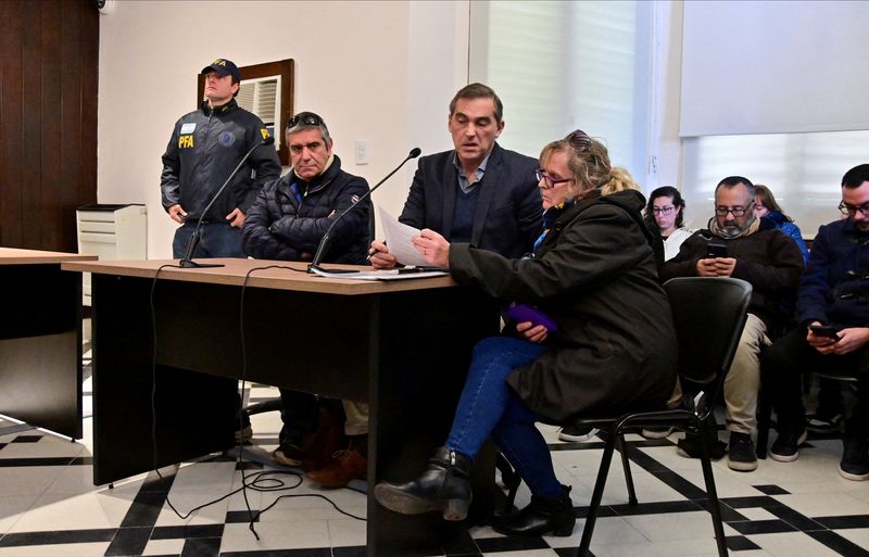 FILE PHOTO: Patricia Kadgien, daughter of a former Nazi official, and her husband, Juan Carlos Cortegoso attend a hearing on charges of concealment, after authorities recovered a portrait of Contessa Colleoni attributed to Italian artist Giuseppe Ghislandi, an iconic painting stolen decades ago by the Nazis, in Mar del Plata, Argentina, September 4, 2025. REUTERS/Jose Scalzo/File Photo