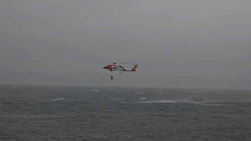 In a video shared by officials, the man is seen being hoisted up into a Coast Guard helicopter.