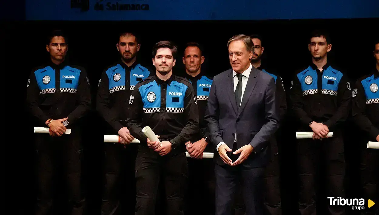 El alcalde, Carlos García Carbayo , agradeció la "profesionalidad, vocación de servicio y cercanía ejemplar" de los agentes y tuvo un recuerdo especial para los 39 policías desplazados a Benetúser durante la DANA , destacando su solidaridad en momentos de urgencia y dolor. "Llevasteis a Valencia el abrazo de Salamanca y demostrastei