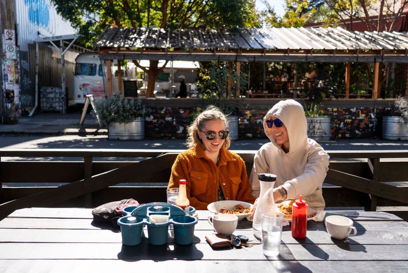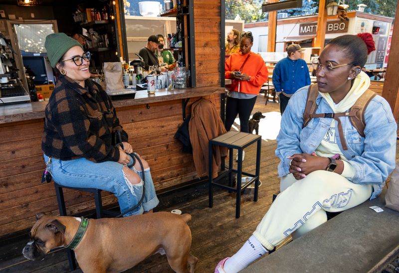Jessi Zemwalt and Dani Jackson, who were brunching together Oct. 13 outside in the city’s Alberta Arts District, also took issue with how the city has been portrayed, especially by conservative media outlets. While dining on vegan brisket made from jackfruit (Zemwalt) and a Nashville hot fried chicken sandwich and fries (Jackson) and peppermint tea, the couple lamented how frustrated they are with the negative coverage.