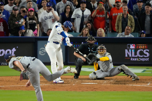 El astro japonés conectó tres enormes jonrones y lanzó hasta la séptima entrada permitiendo sólo dos hits, y los Dodgers barrieron a los Cerveceros de Milwaukee en la Serie de Campeonato de la Liga Nacional con una victoria de 5-1 en el cuarto juego el viernes por la noche.