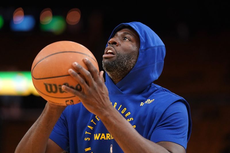 Apr 15, 2025; San Francisco, California, USA; Golden State Warriors forward Draymond Green (23) warms up before the start of the game against the Memphis Grizzlies at the Chase Center. Mandatory Credit: Cary Edmondson-Imagn Images