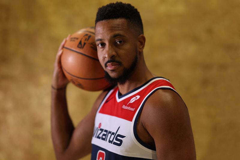Sep 29, 2025; Washington, DC, USA; Washington Wizards guard CJ McCollum (3) poses for a portrait during Wizards Media Day at CareFirst Arena. Mandatory Credit: Geoff Burke-Imagn Images