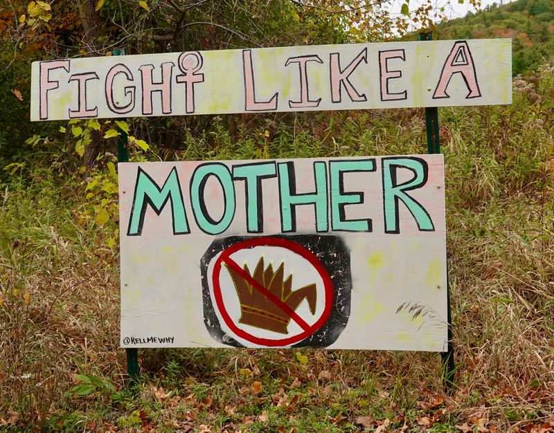 She held a handmade sign illustrated to look like the infamous birthday note President Donald Trump allegedly gave to sex offender Jeffrey Epstein (the Trump Administration denies the president was involved). The sign was emblazoned with the words "Believe The Victims."