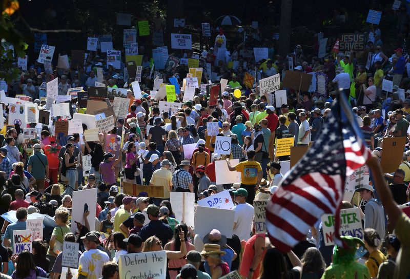More than 2,500 events were scheduled in big cities, suburbs and tiny towns across the nation, dwarfing the 1,800 scheduled before the June 14 protests of the same name. The biggest protests were planned for Washington, DC, Boston, New York, Atlanta, Kansas City, San Francisco, Chicago, New Orleans and Bozeman, Montana.
