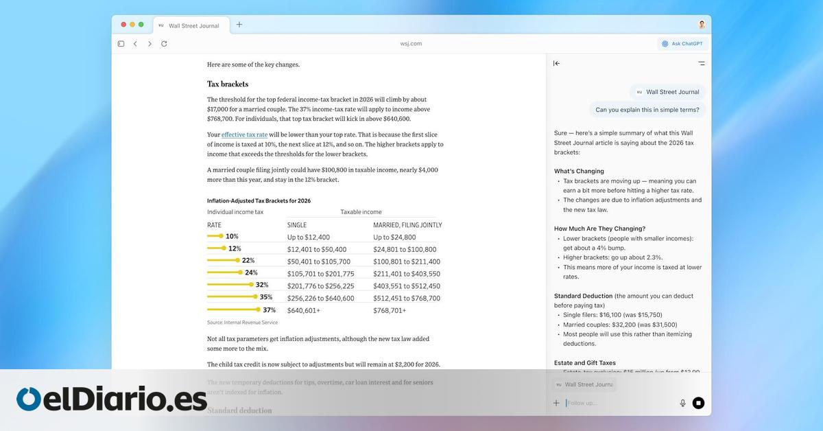 “Queremos llevar (la nueva herramienta) a Windows y dispositivos móviles lo antes posible”, ha apuntado Altman. Sin embargo, el “modo agente” de ChatGPT Atlas —diseñado para realizar tareas más complejas, como hacer compras— solo está disponible por ahora para usuarios de ChatGPT Plus y Pro.