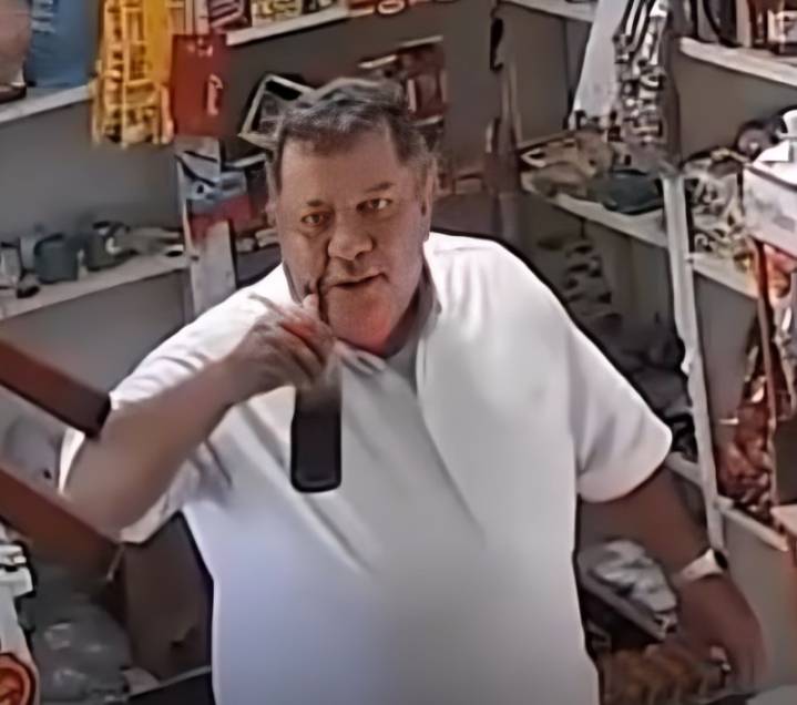 sujeto, con aparente tranquilidad, toma un teléfono celular del mostrador y, con
