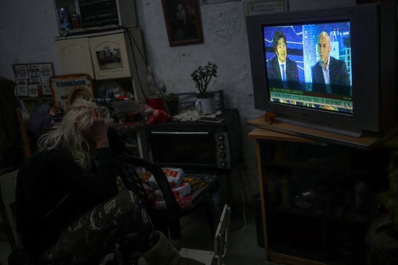 Olga Beatriz Gonzalez, 89, holds her head as she watches an interview of Argentina's President Javier Milei, at her home where she serves food to people in need, Buenos Aires, Argentina, October 16, 2025. Gonzalez is retired, hustling to make ends meet and runs a soup kitchen from her home to help others struggling. The Argentine pension system is stretched beyond breaking point, with nowhere near enough income to pay out what many had expected after years of hard work. "We are people who have done our duty, that is, we are doing our bit and reaching the last part," said Gonzalez. "And we don't want to arrive in so much need." REUTERS/Tomas Cuesta SEARCH "CUESTA ARGENTINA PENSIONERS" FOR THIS STORY. SEARCH "WIDER IMAGE" FOR ALL STORIES.