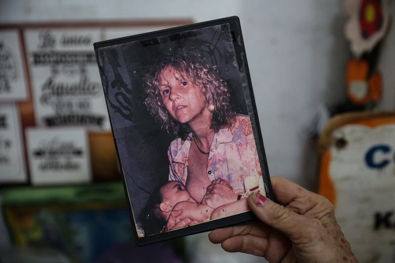 Olga Beatriz Gonzalez, 89, shows a photo of herself when she was younger breastfeeding her son, at her home, where she serves food to people in need, in Buenos Aires, Argentina, October 16, 2025. Gonzalez is retired, hustling to make ends meet and runs a soup kitchen from her home to help others struggling. The Argentine pension system is stretched beyond breaking point, with nowhere near enough income to pay out what many had expected after years of hard work. "We are people who have done our duty, that is, we are doing our bit and reaching the last part," said Gonzalez. "And we don't want to arrive in so much need." REUTERS/Tomas Cuesta SEARCH "CUESTA ARGENTINA PENSIONERS" FOR THIS STORY. SEARCH "WIDER IMAGE" FOR ALL STORIES.