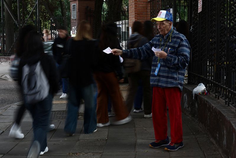 Jorge, 72, hands out a flyer with his phone number to promote his private tutoring lessons for university students in Buenos Aires, Argentina, April 12, 2024. After a lifetime working in the oil industry, he now teaches at a McDonald's to make ends meet, as his pension is not enough. Jorge voted for President Javier Milei but says he feels disappointed because the economic reforms that were supposed to target the political elite, or "the caste," ended up hurting ordinary workers instead. "It seems the ones paying the price are retirees, bus riders, and workers like me," he says. REUTERS/Tomas Cuesta SEARCH "CUESTA ARGENTINA PENSIONERS" FOR THIS STORY. SEARCH "WIDER IMAGE" FOR ALL STORIES.