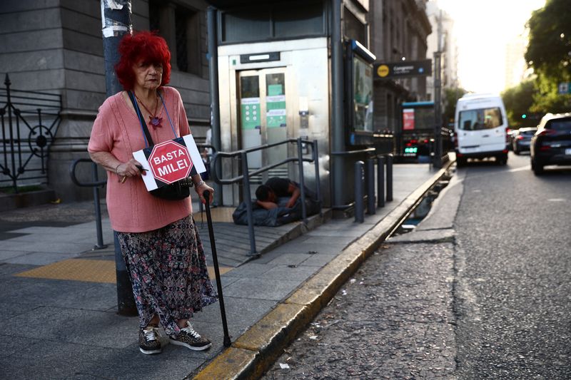 BUENOS AIRES (Reuters) -Every Wednesday, 89-year-old Olga Beatriz Gonzalez eats a simple breakfast, picks up donations of bread and vegetables for the soup kitchen she runs from her home in the Buenos Aires suburbs, then starts making protest signs for the weekly demonstration she will attend in the city center.