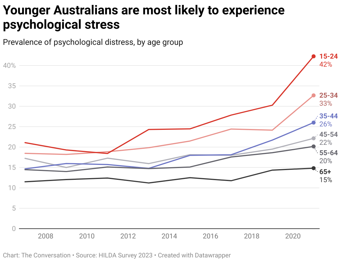 Across all age groups, psychological distress has been rising, but younger Australians are bearing the brunt.