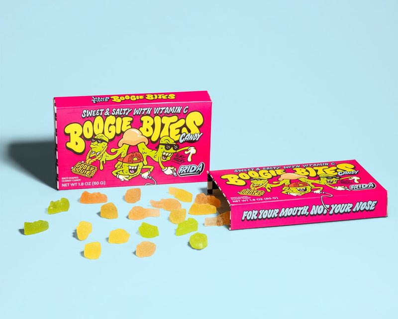 Frida, a parent lifestyle brand known for its Breast Milk Ice Cream, released Boogie Bites Candy on Monday, Oct. 27. The sweet and sour gummies, which come in three shapes and colors, were designed to resemble "the real thing," a Frida news release says.