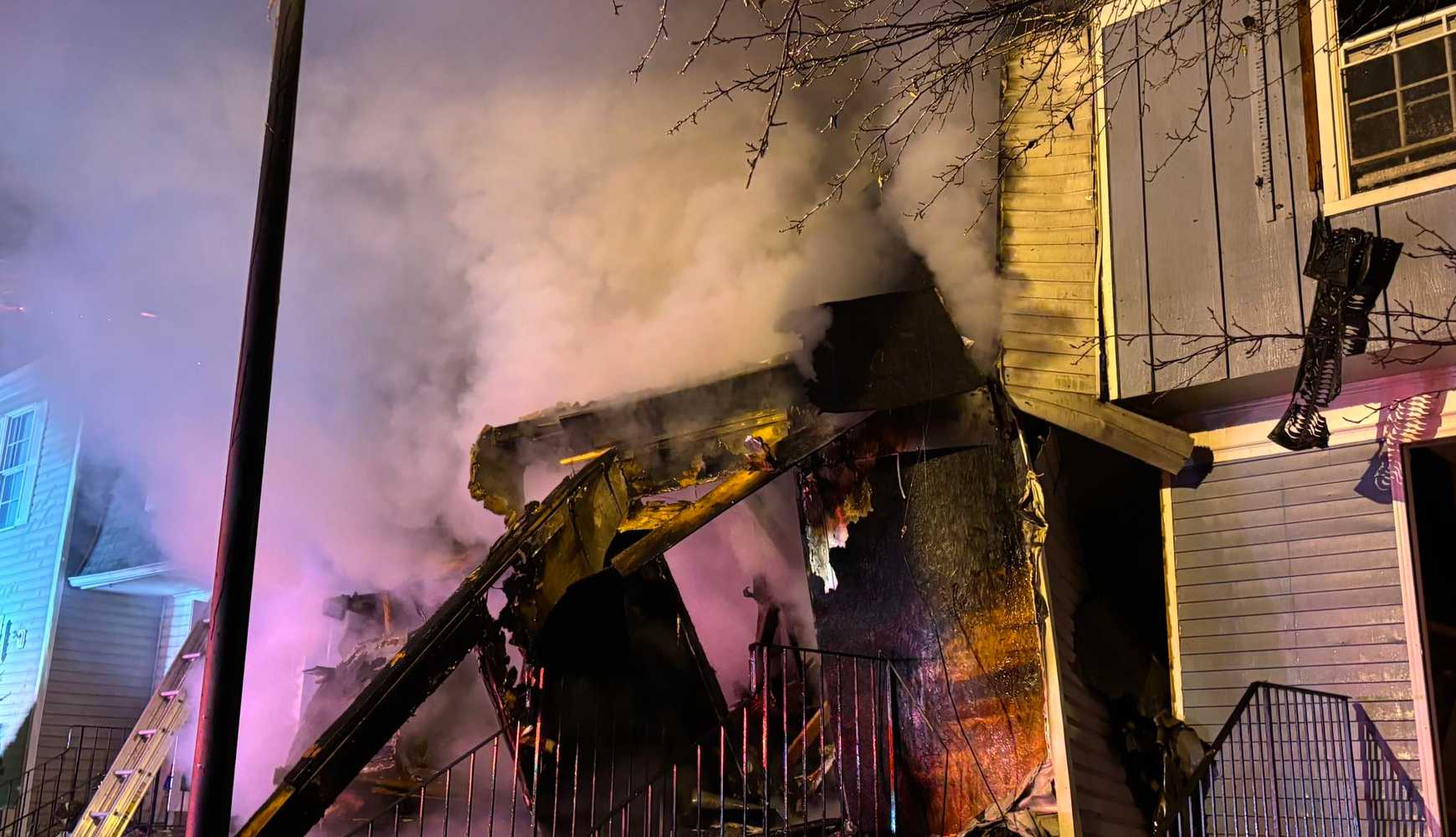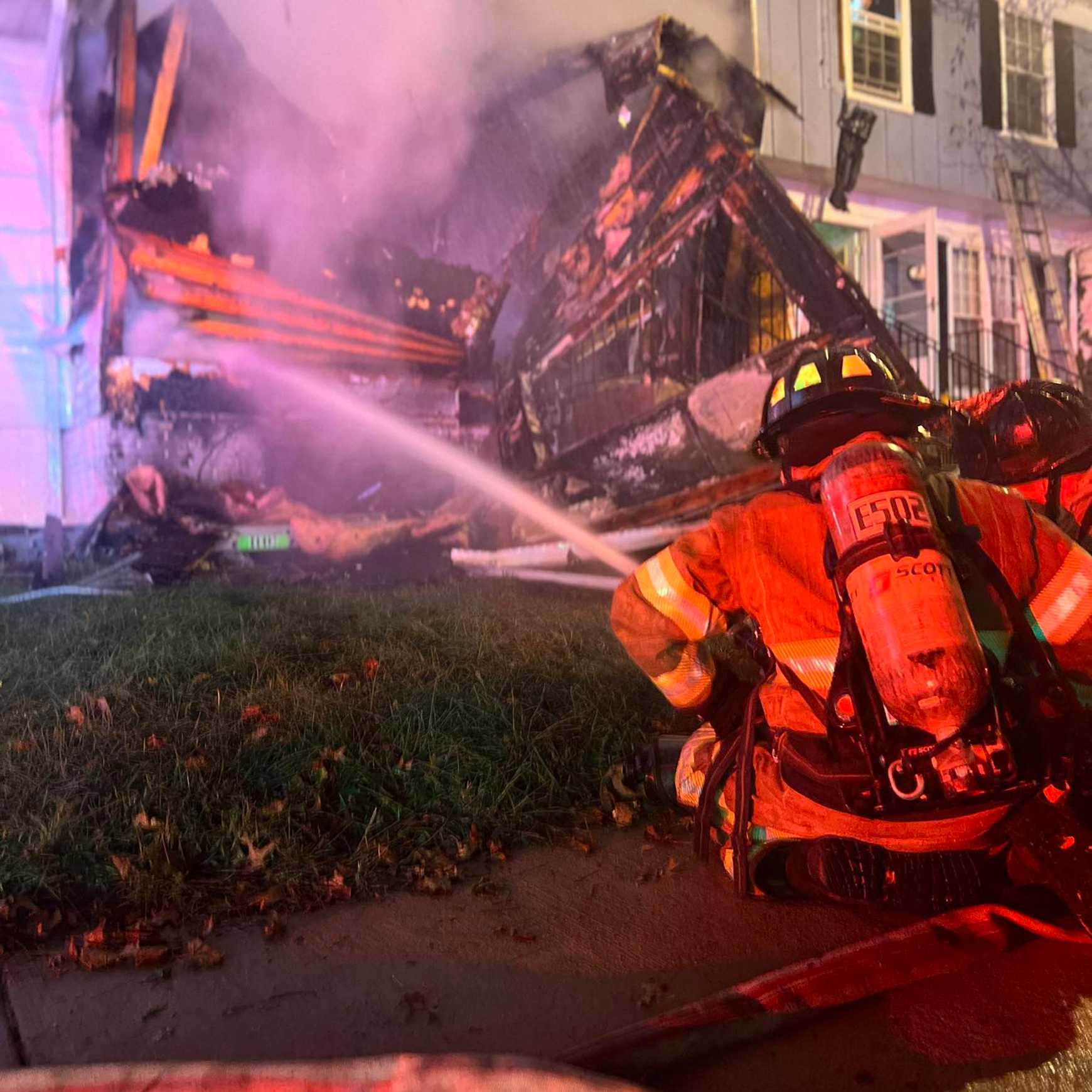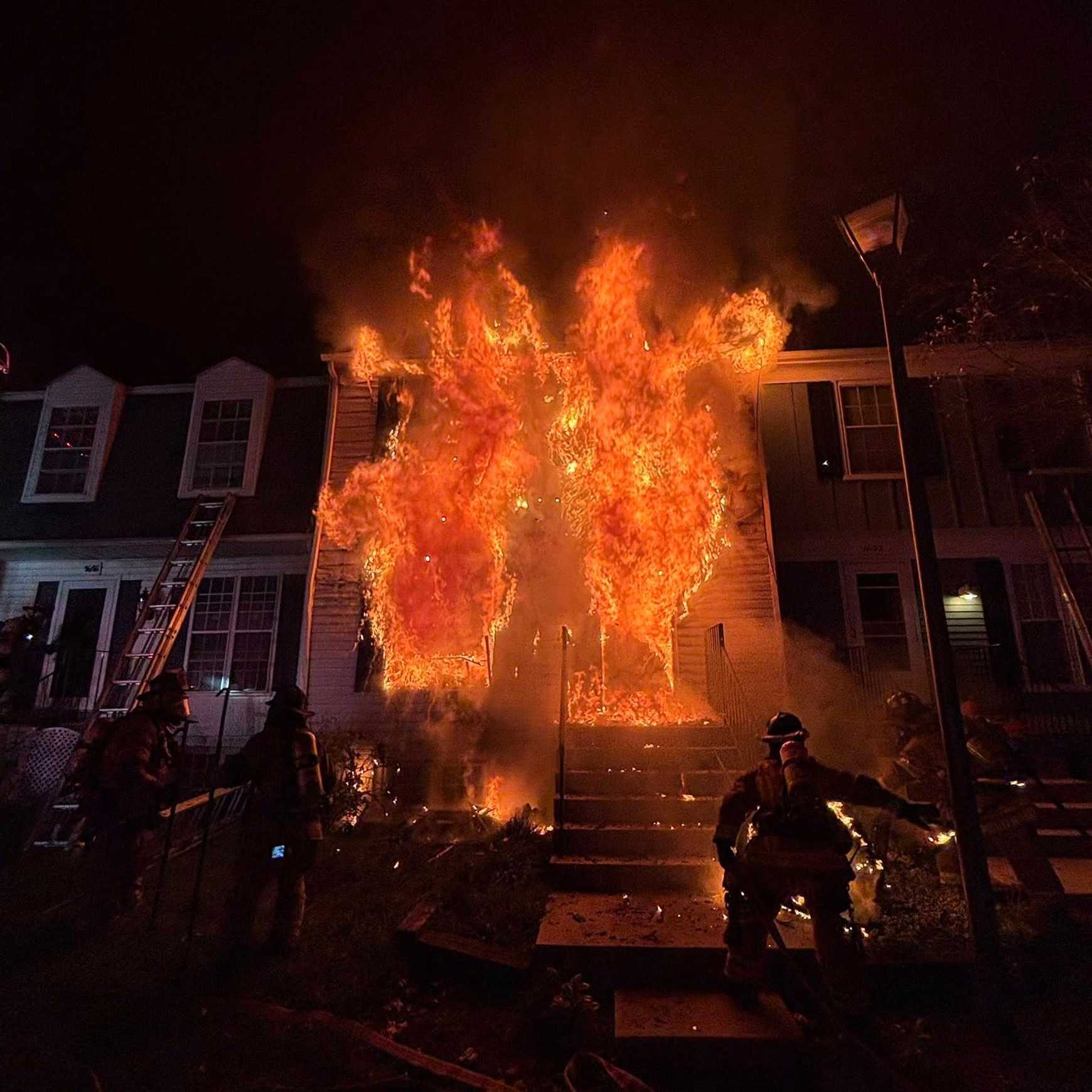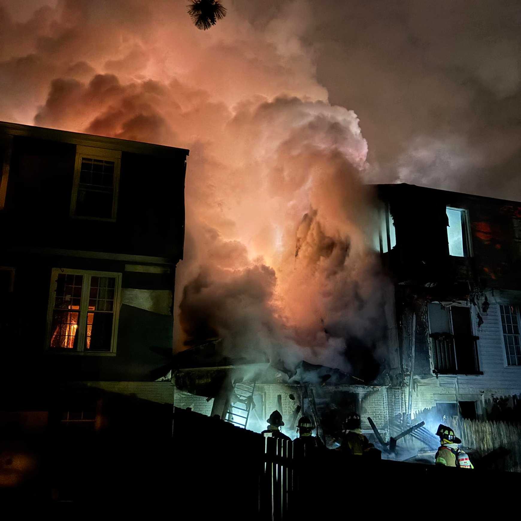 A Maryland townhouse exploded into a wall of flames early Sunday, collapsing within minutes as firefighters fought to keep the inferno from spreading through the row.