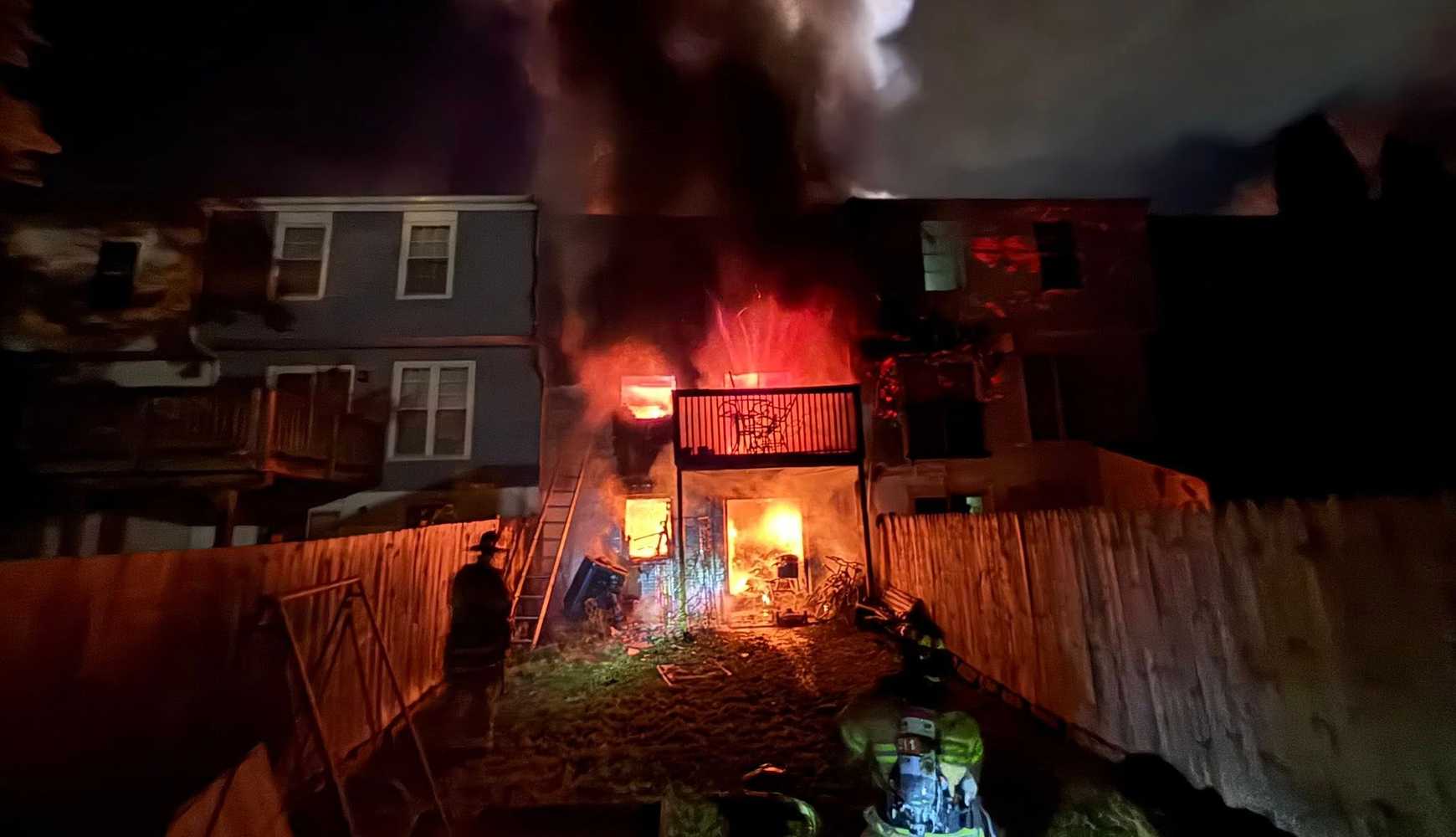 When firefighters arrived, flames were shooting from the middle-of-the-row townhouse, prompting command to call a second alarm as smoke poured into adjoining units.