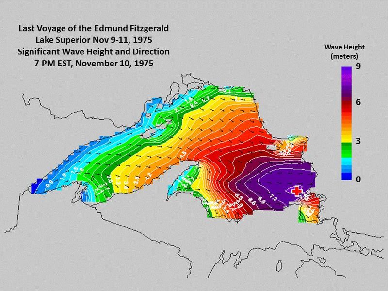 The Fitzgerald was in the worst possible location during the worst weather of the storm. The wind and waves from the west hit the freighter broadside as it tried to flee south to safety in Whitefish Bay.