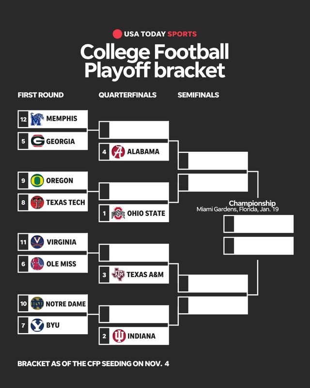 The next three rankings will come on the remaining Tuesdays in November. The decisive rankings will be Sunday, Dec. 7, when the 12 teams in the field and the playoff bracket is announced.