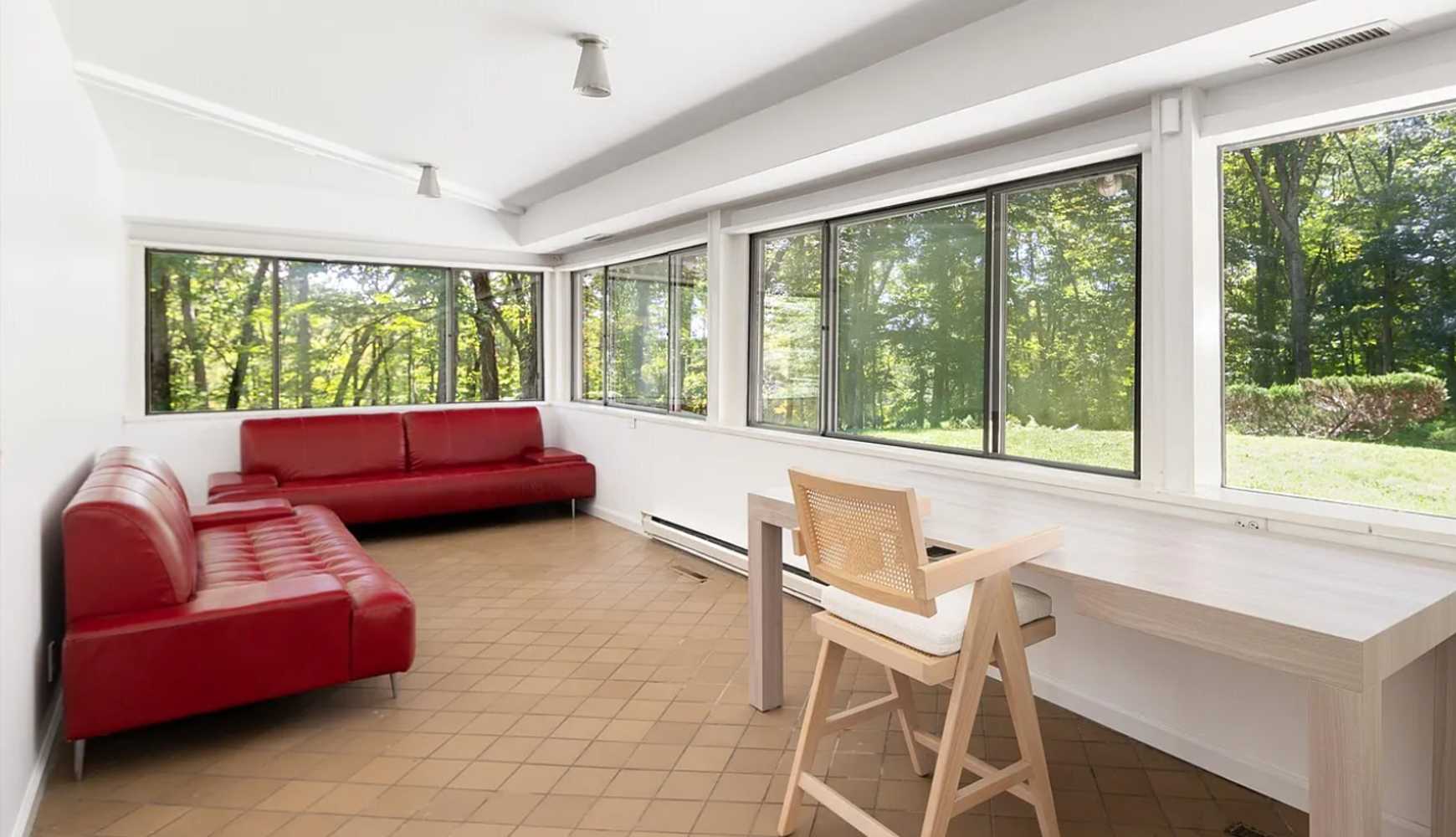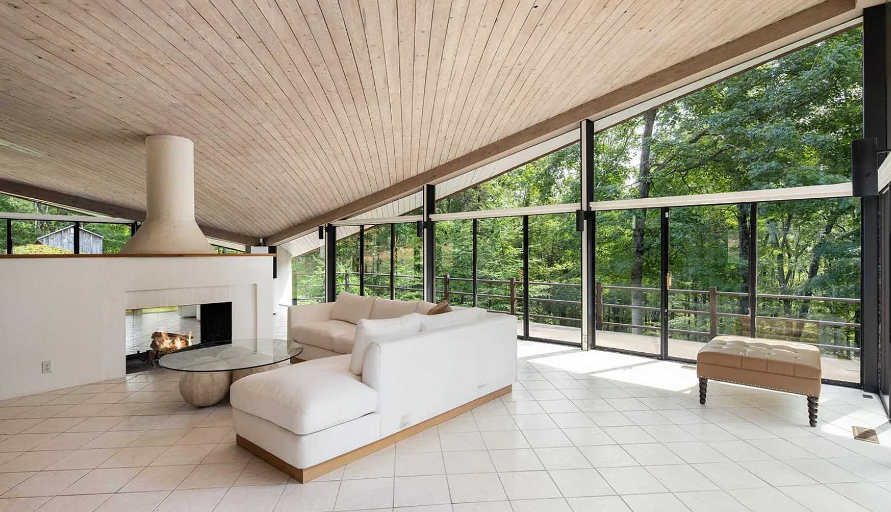 “Every room is immersed in natural light and surrounded by serene wooded views, offering unmatched privacy and a sense of retreat,” reads the home’s Zillow listing.