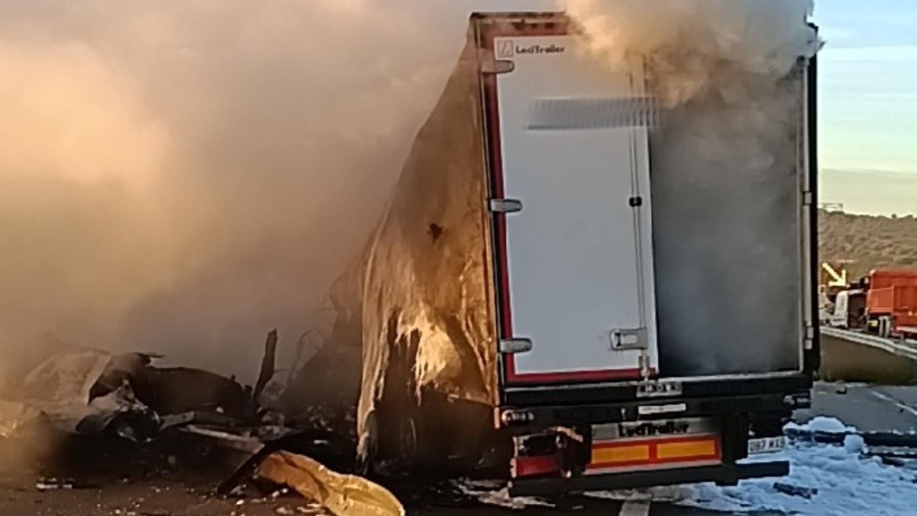 Un grave accidente de tráfico ha provocado en la madrugada de este martes el corte total de la autopista AP-7 a la altura de La Aldea ( Tarragona ) en ambos sentidos. En el siniestro, ocurrido alrededor de las 05:25 horas, se han visto implicados tres camiones de gran tonelaje que han acabado ardiendo tras la colisión.