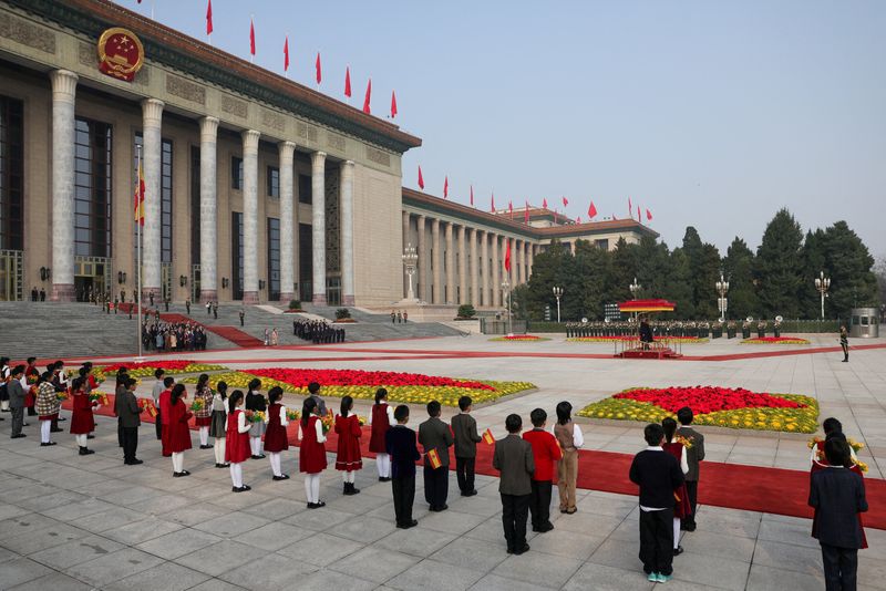 BEIJING (Reuters) -Chinese President Xi Jinping on Wednesday presented King Felipe VI of Spain with a vision of cooperation with "great global influence," as Beijing seeks Madrid's support within the EU in exchange for greater economic security for its European partner.