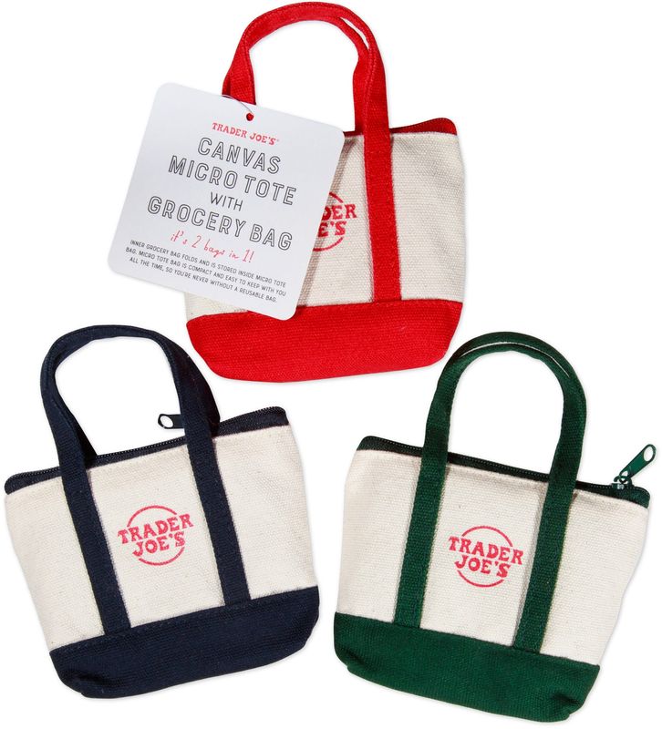 Trader Joe's touts the totes as a "great gift for any TJ's fans in your life," and while they are intended to be a carrier for your larger reusable grocery bag, the company says it's "tote-ally" up to you how to use them. People on social media have described using the Micro Totes as a fashion accessory and even as a Christmas ornament.