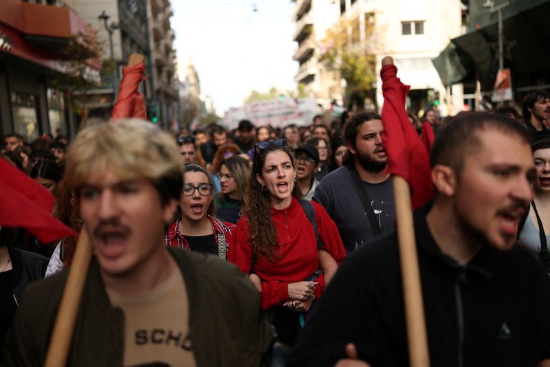 ATHENS (Reuters) -Thousands of Greeks marched through Athens on Monday to mark the anniversary of a violently quashed student uprising in 1973 that helped topple the military junta that then ruled the country.