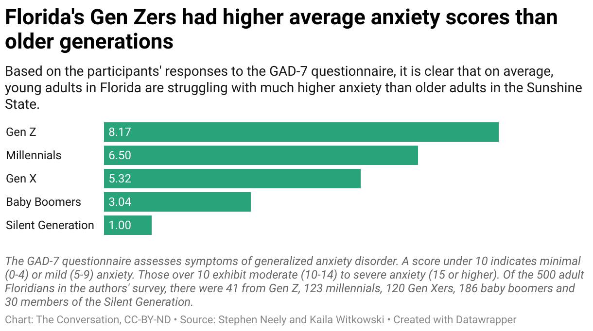 Our survey found that roughly 1 in 5 Floridians are struggling with moderate to severe anxiety, which is consistent with national statistics.