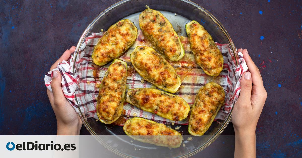 Por último, colocamos las cáscaras de la berenjena sobre una bandeja para horno, rellenamos con la mezcla preparada y, si lo deseamos, añadimos un poco más de queso por encima. Horneamos durante 25 minutos a 180ºC.