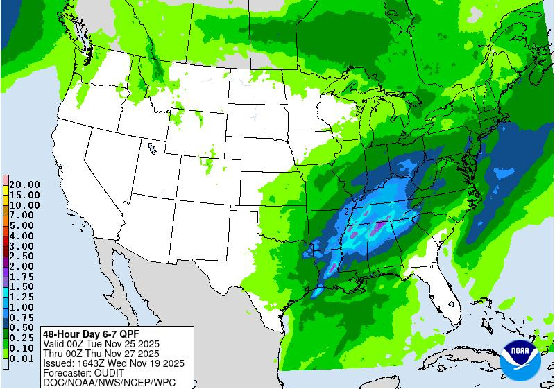 By Wednesday, Nov. 26, "it seems plausible that thunderstorms could impact travel through Atlanta or Florida," said Houston-based meteorologist Matt Lanza on his blog "The Eyewall." "Winds could impact flights in Chicago and Minneapolis," he said.