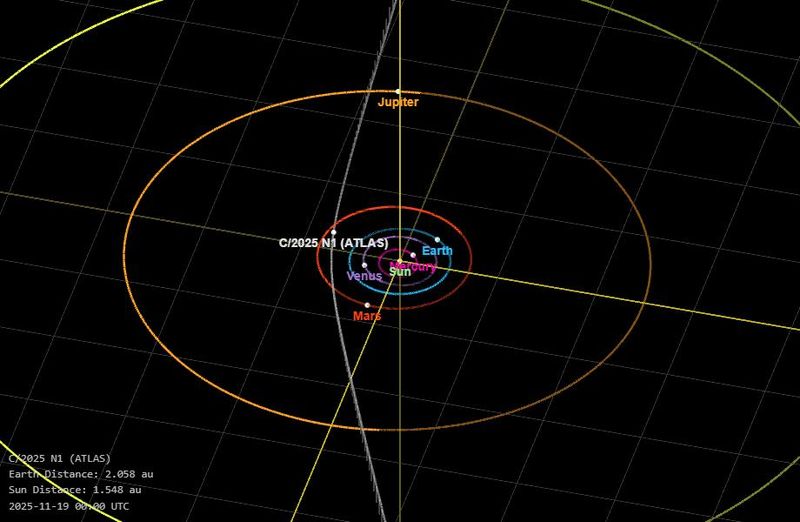 The comet 3I/ATLAS, which is not a threat to Earth, is projected to pass within about 170 million miles of our planet on Dec. 19 – or about twice the distance between Earth and the sun.