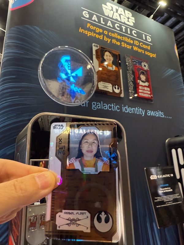 There was a whole section of the show floor dedicated to branded photo booths. The most impressive was a new Star Wars Galactic ID maker by Apple Industries. Instead of printing on film paper, the machine produces high-quality, hard-plastic Rebel and Resistance ID cards.