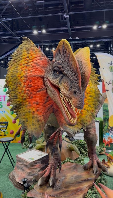 I was delighted by an animatronic Dilophosaurus by Only Dinosaurs. I know it was supposed to look scary as it opened its toothy mouth and fanned out its neck frill, but I thought it was adorable. I was also enamored by the company's puppets, including a baby Triceratops whose mouth I could open and close and whose eyes I could make blink by hand.