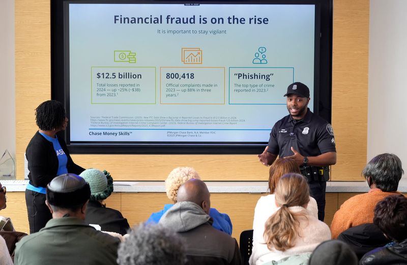 Taylor and Nelson joined on Tuesday, Nov. 18, to alert seniors gathered for a workshop at the Chase Bank branch in Corktown, Michigan. JPMorganChase hosted more than 20 such workshops across the country during International Fraud Awareness Week to provide consumers with more tools to prevent scams.