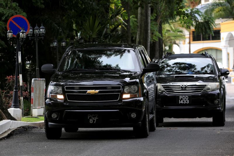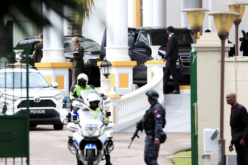 The motorcade carrying Joint Chiefs of Staff Gen. Dan Caine prepares to leave the Diplomatic Centre after meeting Prime Minister of Trinidad and Tobago, Kamla Persad-Bissessar to discuss regional security and cooperation against transnational crime, in Port of Spain, Trinidad and Tobago, November 25, 2025. REUTERS/Andrea de Silva