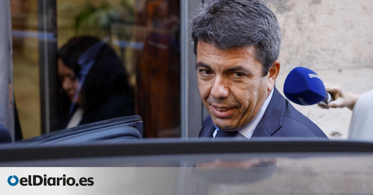 El president de la Generalitat en funciones, Carlos Mazón, asegura que el día de la dana ni pasó por su domicilio ni entró en el aparcamiento donde había estacionado la periodista con la que comió. El dirigente del PP valenciano ha atendido a los medios de comunicación este miércoles antes de presidir el que posiblemente sea el último pleno de su Ejecutivo, en vísperas de la sesión de investidura de su sucesor. “Vuelvo a desmentir que fui a mi casa, vuelvo a desmentir que me enseñaron ningún pantallazo”, ha afirmado el presidente valenciano, que asegura que no paró en ningún lugar entre el aparcamiento al que fue al salir del restaurante para acompañar a la periodista Maribel Vilaplana.