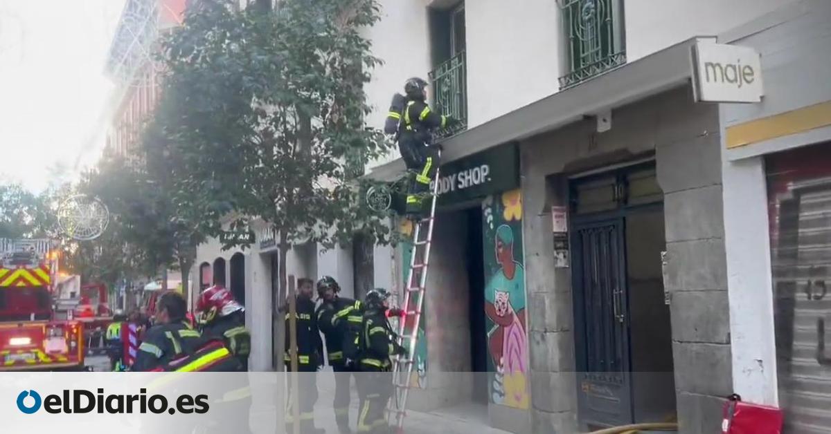 Un incendio en un bloque de viviendas de la calle Fuencarral de Madrid ha dejado diez heridos leves por inhalación de humo, dos de ellos agentes de la Policía Nacional. El fuego se originaba en la primera planta del número 10 de la céntrica vía madrileña por un posible fallo eléctrico.