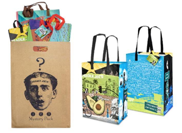 Each "mystery pack" retails for $2.99 and contains three reusable shopping bags. Part of the fun is that customers don't know which three reusable bags they received until they open the "mystery packs."