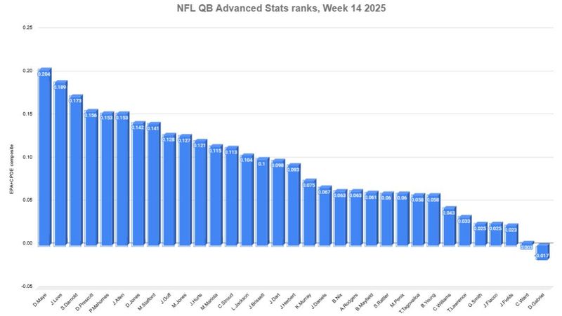 This article originally appeared on For The Win: NFL QB rankings Week 14: Drake Maye gets the stratosphere to himself