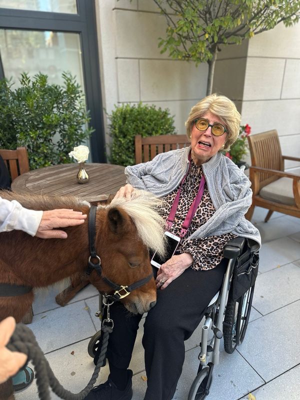 “A lot of our residents actually had some early childhood stories that they were sharing about growing up on a farm or riding horses,” said Alyssa Friedman, program director at Sunrise at East 56th. “I’ve never seen a horse in a high-rise building, so I thought this was a good opportunity to bring something different.”