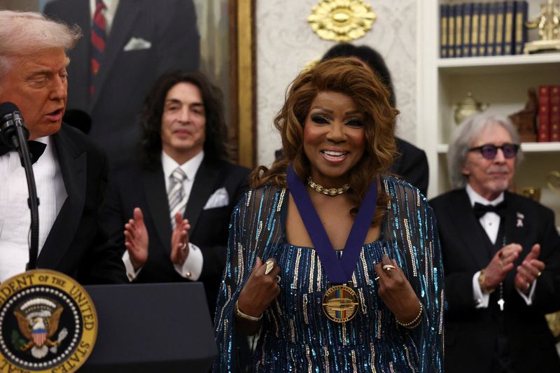 In the Oval Office on Saturday, Trump praised this year's honorees and gave them newly designed gold medallions with blue ribbons, rather than the rainbow-colored ribbons used since 1978 to represent the spectrum of performing arts.