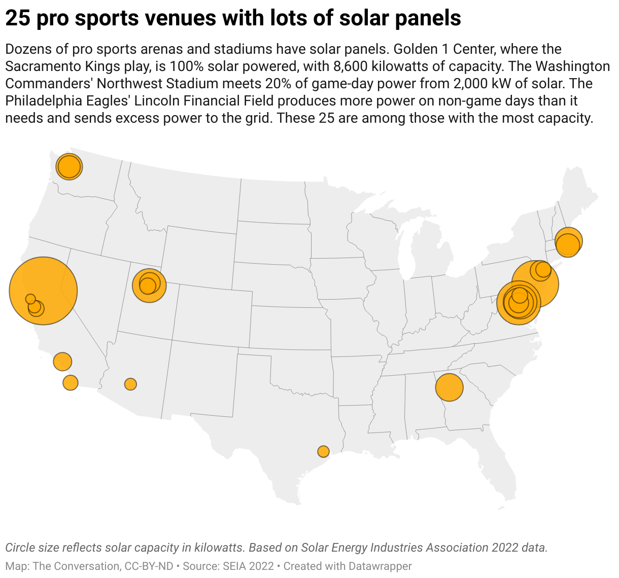 If you go to a pro sports event today, there’s a good chance the stadium or arena will be powered at least in part by renewable energy. The team likely takes steps to reduce energy and waste. Some even claim to have net-zero greenhouse gas emissions, meaning any emissions they still do produce they offset by paying for projects, such as tree-planting, that reduce greenhouse gases elsewhere.
