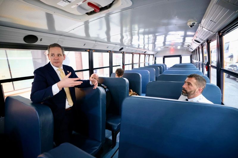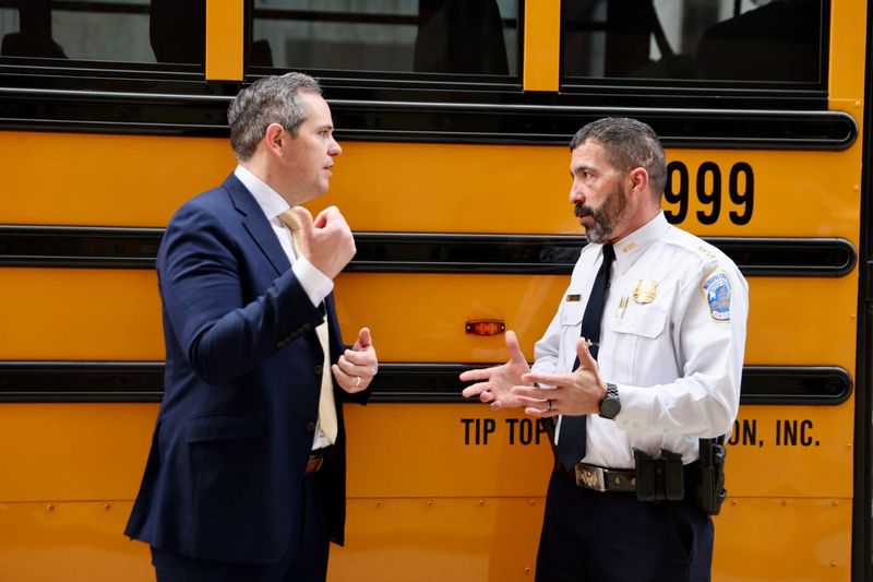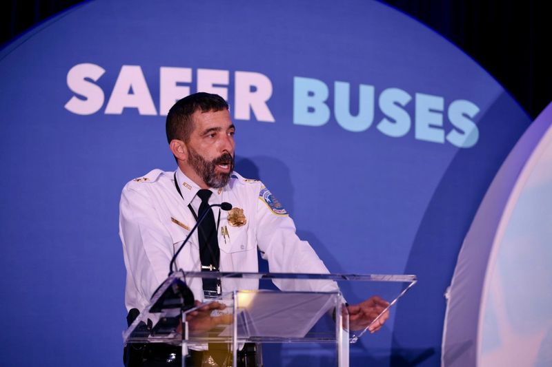 Just after 8 a.m., state and local officials, including Carlos Heraud, an assistant chief for the DC Metropolitan Police Department, boarded a yellow school bus equipped with BusPatrol cameras.