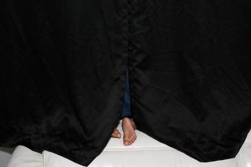 The two-year-old son of pregnant, asylum-seeker Yaoska peers out the window of the Miami-area motel room where he lives with his mother and brother, after their father was deported to Nicaragua, Thursday, Nov. 13, 2025. (AP Photo/Rebecca Blackwell)
