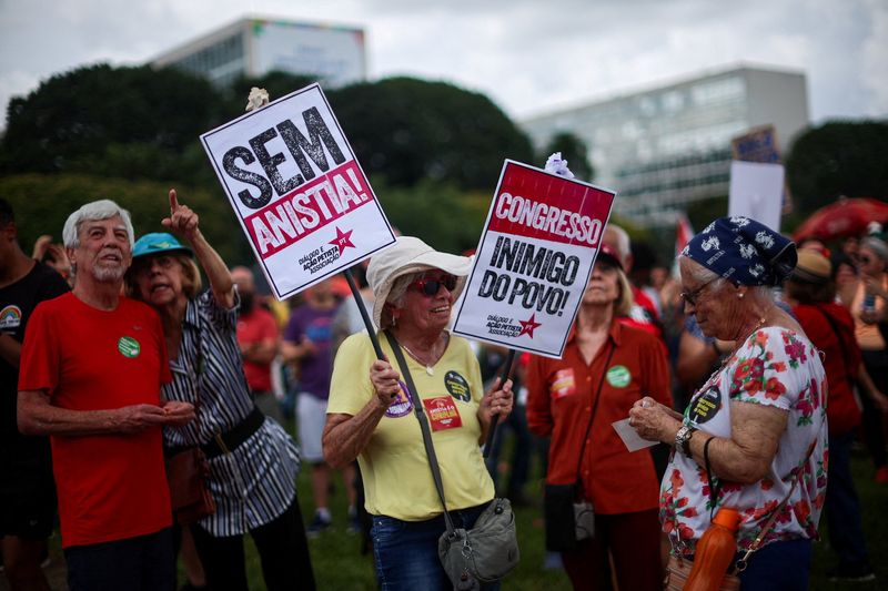 SAO PAULO, Dec 14 (Reuters) - Thousands of Brazilians on Sunday protested in major cities against a legislative effort to lower the jail sentence of former President Jair Bolsonaro and his supporters for plotting to overthrow democracy after he lost his 2022 reelection bid.